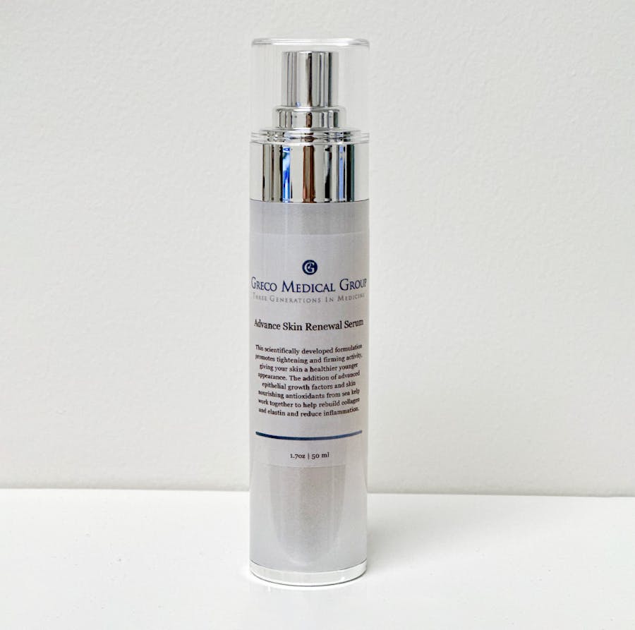 Greco Advanced Skin Renewal Serum is a growth factor-based skin serum fortified with epidermal growth factor (EGF), copper peptides, and microalgae-based collagen. EGF is a key growth factor in cellular repair and regeneration of the skin leading to improved texture and tone, enhanced hydration, reduction of pigmentation, and optimal skin health.