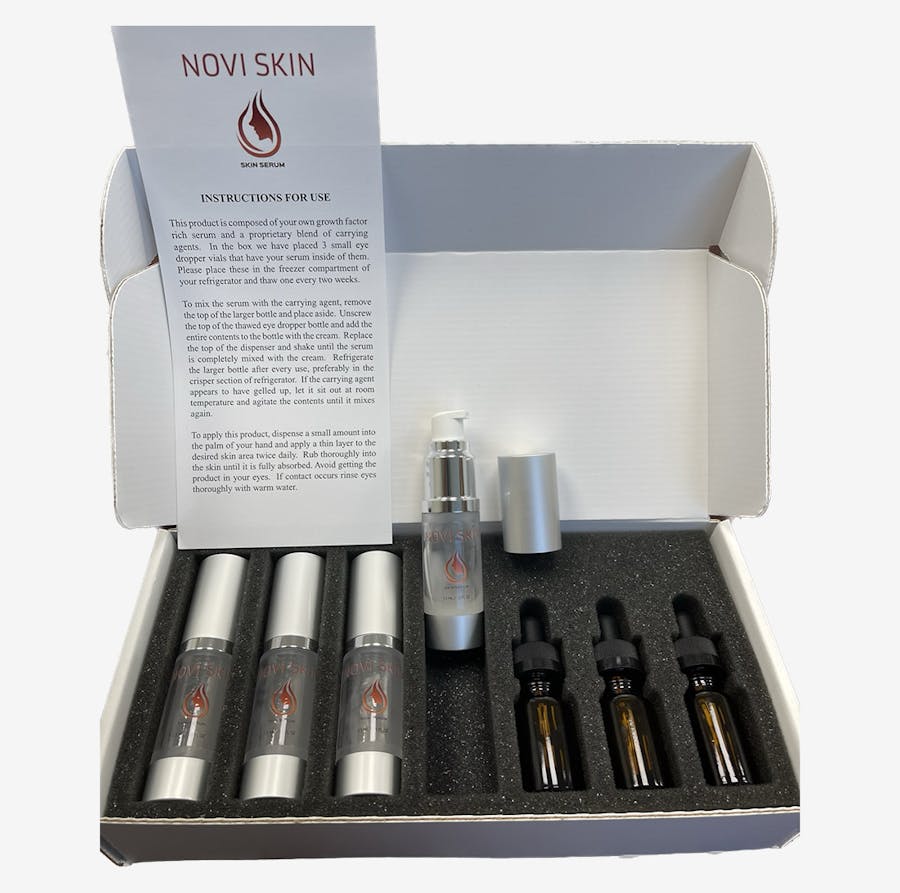 Novi Skin Serum is a personalized take-home skin and hair serum that incorporates your own personalized growth factors and anti-inflammatory proteins into an easy-to-use serum for hair maintenance and home hair growth treatments. This personalized system is designed for you to use in between professional treatments to maximize your hair growth potential.