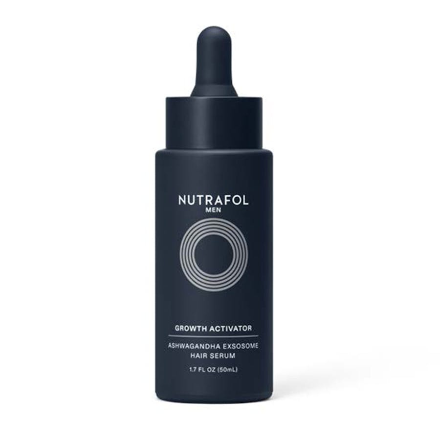 Nutrafol Growth Activator Hair Serum for men is a lightweight serum containing natural ingredients such as Ashwagandha Exososmes, Irish Moss Peptides, Pea Sprout Extracts, Sea Buckthorn, Red Ginseng and Caffeine to support visibly thicker, stronger hair. It is designed for med with visible signs of thinning hair like hairline changes, a widening part, thinning on the temples and top, or overall thinning hair.